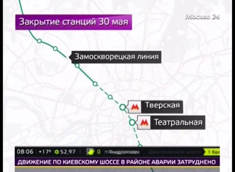 Так, сегодня закрыты станции "Театральная", "Тверская" и "Маяковская". Их работа возобновится в воскресенье, 31 мая, в 5.30.