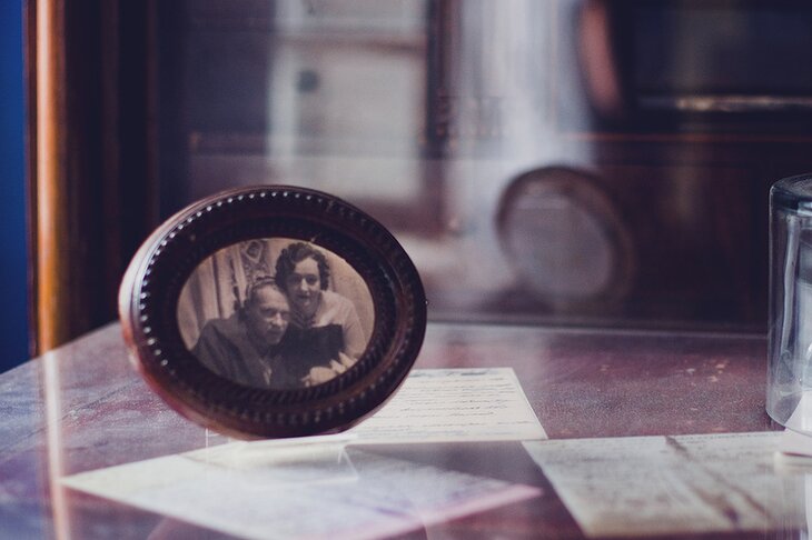 Также в комнате можно увидеть последнюю фотографию Булгакова, сделанную в Барвихе, где писатель безуспешно лечился от смертельной болезни. И знаменитый снимок Михаила Афанасьевича в шапочке Мастера, которую ему сшила третья и последняя жена, булгаковская "Маргарита" Елена Сергеевна Шиловская.
