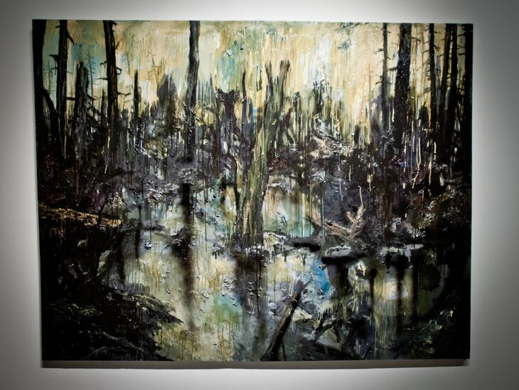 "Петр Швецов работает с традицией, которая в Петербурге более сильна, чем в Москве. Попытка вытащить традицию на площадку современности, чтобы обсудить еще раз, очень характерна для питерских художников. В данном случае мы говорим о традиции экспрессионистской живописи. Это легкая свободная манера, но в то же время в работах Швецова есть столкновение. Есть некий сюжет (болото), и есть живописная система, которая живет сама по себе. С одной стороны,живопись создает это болото, а с другой – она такая интересная, такая бурлящая, живая, и делает само болото неважным. Это как в опере – не так важны слова, как баритон, который их исполняет".