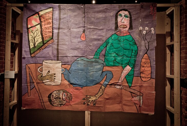 68 художников из Петербурга привезли свои работы на выставку "Другая столица" в Музей Москвы. Мы пообщались с кураторами и художниками выставки и составили большой путеводитель по главным экспонатам коллекции смелого и оригинального совриска из города на Неве.