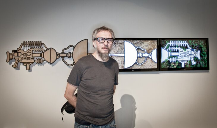 Стас Багс на фоне инсталляции. Фото: m24.ru/Владимир Яроцкий