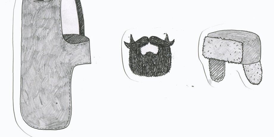 В разработке униформы я учитывала специфику работы дворников. Я добавила фартук и вставки на рвущихся и марких местах: манжетах, карманах, воротнике и ботинках. Вставки выполнены из прочной влагонепроницаемой ткани. Эти элементы отражают свет, защищая работника на дороге и в темное время суток. Я также придумала отличительную нашивку, выполненную в технике дотворк. Образ бородатого дворника в потрепанной одежде и шапке-ушанке до сих пор актуален, и я не отступила от него.