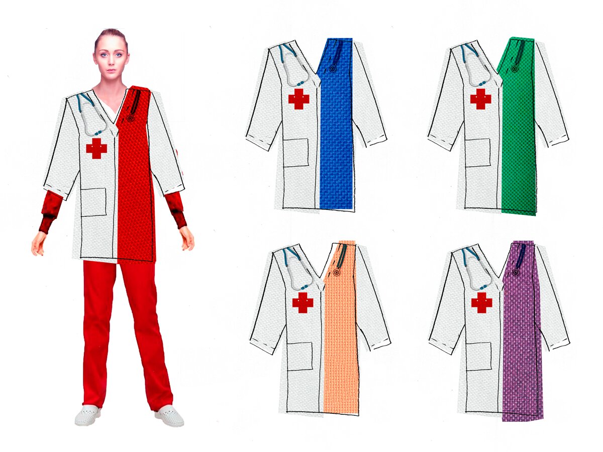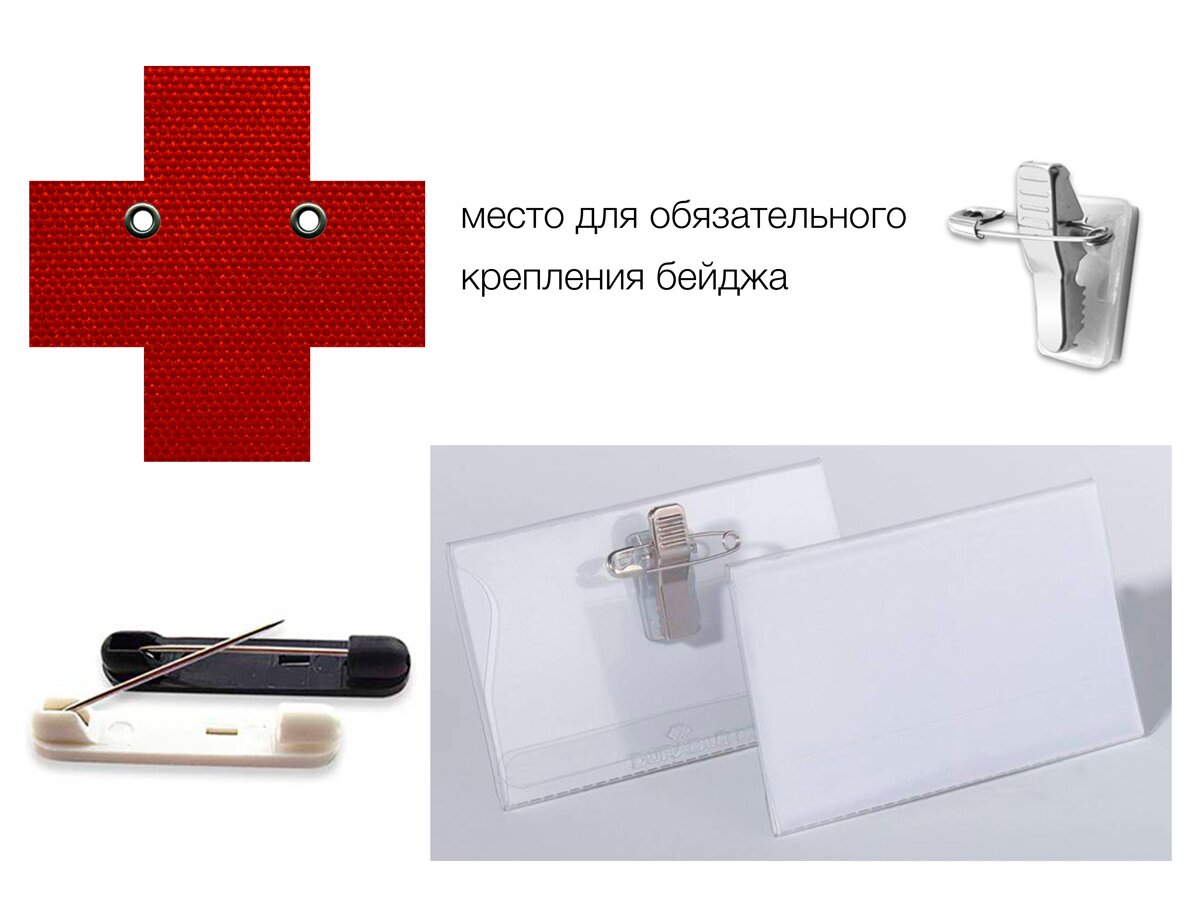 Бейдж с именем врача – важнейший элемент его внешнего вида. Благодаря обработанным прорезям бейдж удобно цеплять, а красный крест дает дополнительный акцент. Порой врачам необходим второй слой одежды поверх халата. Это должна быть не куртка или жилетка, а накидка, вроде пончо с капюшоном.