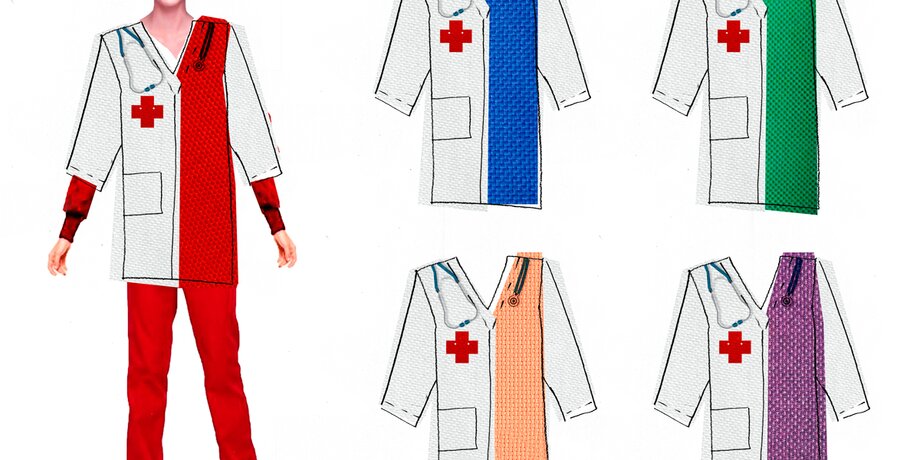 Я хотела бы сделать врачебную униформу более актуальной, неожиданной, яркой. Во время работы я вдохновлялась платьями от дизайнера Александра Терехова. Я также взяла за основу концепцию, заложенную в костюмах от Inshade для спектакля "Смерть Тарелкина".