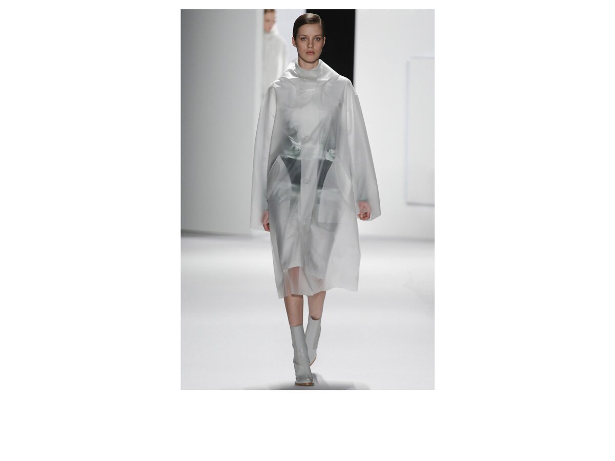 Ключевым компонентом при создании образа была прозрачность, на ней сделан основной акцент. Я вдохновлялась плащом-дождевиком от дизайнера Muji. Во время работы над образом также вспомнился Человек-лед (Iceman) из комиксов про Людей Икс.