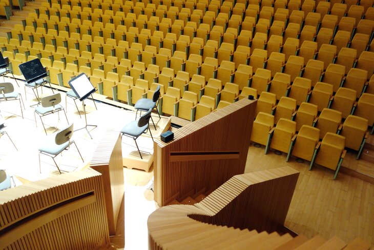 Кроме того, существуют специальные устройства, созданные для улучшения акустических параметров. Первый тип – это системы, построенные на основе динамиков и микрофонов: они устанавливаются на стенах и потолке, так что микрофоны ловят исходящие волны, после чего звук обрабатывается специальным процессором и выходит обратно через установленные в тех же местах динамики. Но это – весьма дорогое удовольствие, да и применяются такие системы исключительно в больших концертных залах, например в столичном Доме музыки.