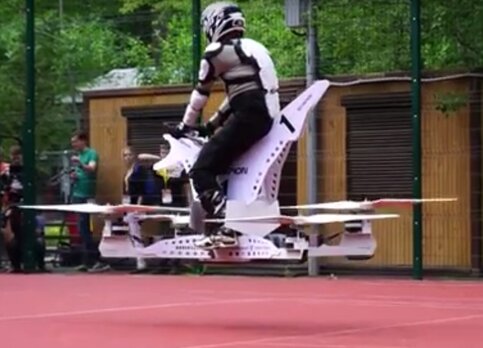 Аппарат по форме и размерам напоминает мотоцикл для мотокросса. Ховербайк – это гибрид между вертолетом и байком.
