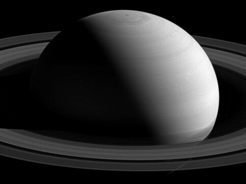 Изображение получено станцией 4 февраля этого года, когда она находилась на расстоянии 2,5 миллиона километров от планеты. Несмотря на то что на снимке Сатурн кажется спокойным, в его атмосфере происходят активные движения газовых потоков.