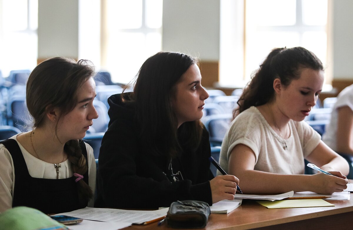 Ирина Игоревна не единственный учитель в аудитории, их три. Ирина Игоревна работает у доски, Тамара Георгиевна с Наталией Евгеньевной идут по рядам и проверяют домашнее задание у каждого ученика, а потом садятся за свободные парты и устраивают консультации. В течение всего занятия любой человек может подойти к ним с вопросом. И по такой системе в школе проходят все семинары по профильным предметам: один педагог учит, другой консультирует, объясняет непонятное. Множество преподавателей – это и множество точек зрения на решение задач.