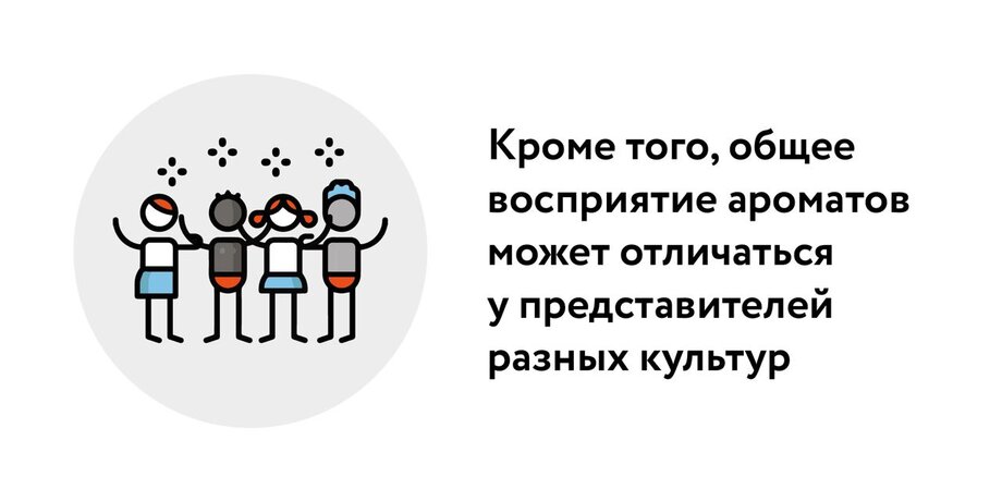 Кроме того, общее восприятие ароматов может отличаться у представителей разных культур: запах подкисшей рыбы, неприятный нам с вами, у скандинавских и многих северных народов определяется как нейтральный или даже приятный, поскольку они веками едят квашеные и сброженные продукты.