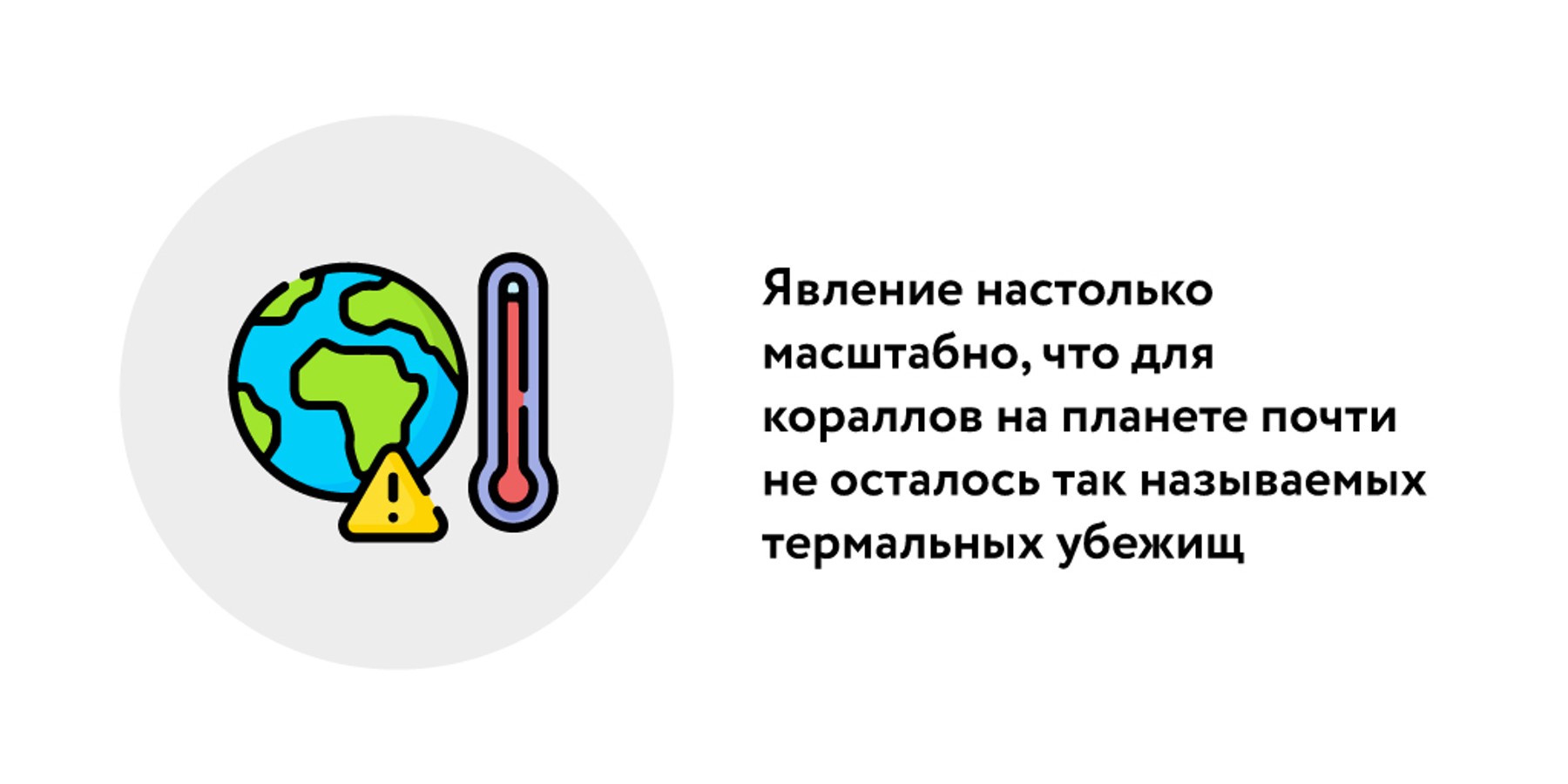Во Флориде в среднем погиб каждый пятый коралл. На тихоокеанской стороне Мексики в одном районе погибло от 50 до 93% кораллов. Почти четверть кораллов погибла от жары в прошлом году на отдаленных островах Чагос в центре Индийского океана. После обесцвечивания в начале 2024 года, которое привело к гибели 40% кораллов в одном из районов на юге Большого Барьерного рифа, ученые описали "кладбище мертвых кораллов" и в северной его части. Специалисты сообщают о обесцвечивании рифов у берегов Мадагаскара и Восточной Африки. Явление имеет настолько обширный характер, что на планете почти не осталось так называемых термальных убежищ – районов, в которых температуры раньше не достигали экстремальных значений.