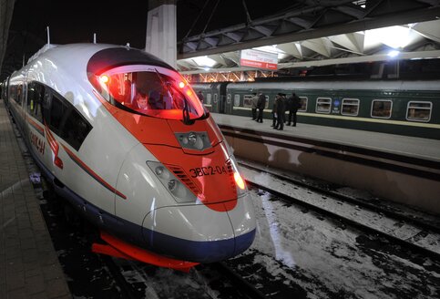 Высокоскоростной электропоезд "Сапсан" серии Velaro RUS, разработанный для российских железных дорог, производится концерном Siemens. РЖД приобрели восемь составов за 276 миллионов евро. Кроме того, Siemens получила контракт стоимостью на 354 миллиона евро на техобслуживание составов в течение тридцати лет.Первый рейс "Сапсана" состоялся в декабре 2009 года из Москвы в Санкт-Петербург. Сейчас эти составы курсируют между Москвой, Санкт-Петербургом и Нижним Новгородом, скорость в пути составляет до 250 километров в час. Поездка из Москвы в Петербург занимает всего 3 часа 45 минут, а из Москвы в Нижний Новгород - 3 часа 55 минут.