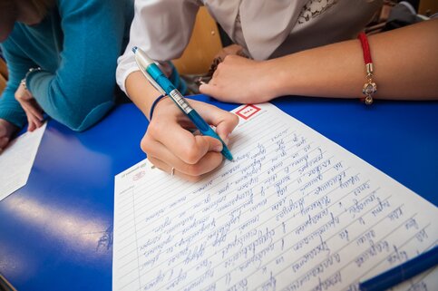 Для того, чтобы проверить свою грамотность, участники "Тотального диктанта" одновременно напишут текст на русском языке, сидя за партами.