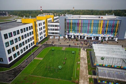 Здание разделено на функциональные зоны: помещения для начальных классов, основной школы и старших классов выделены в отдельные блоки. В школе созданы все условия для успешного образовательного процесса – просторные и светлые классы, специализированные кабинеты, оснащенные необходимым оборудованием, современный спортзал, компьютерный класс, медиатека, хореографическая студия и большой актовый зал.