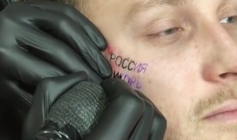 Популярный рэп-исполнитель Александр Тарасов, известный всем под псевдонимом T-killah опубликовал на своей странице Instagram видео, где ему делают татуировку на лице "РОССИЯ ИГОРЬ".