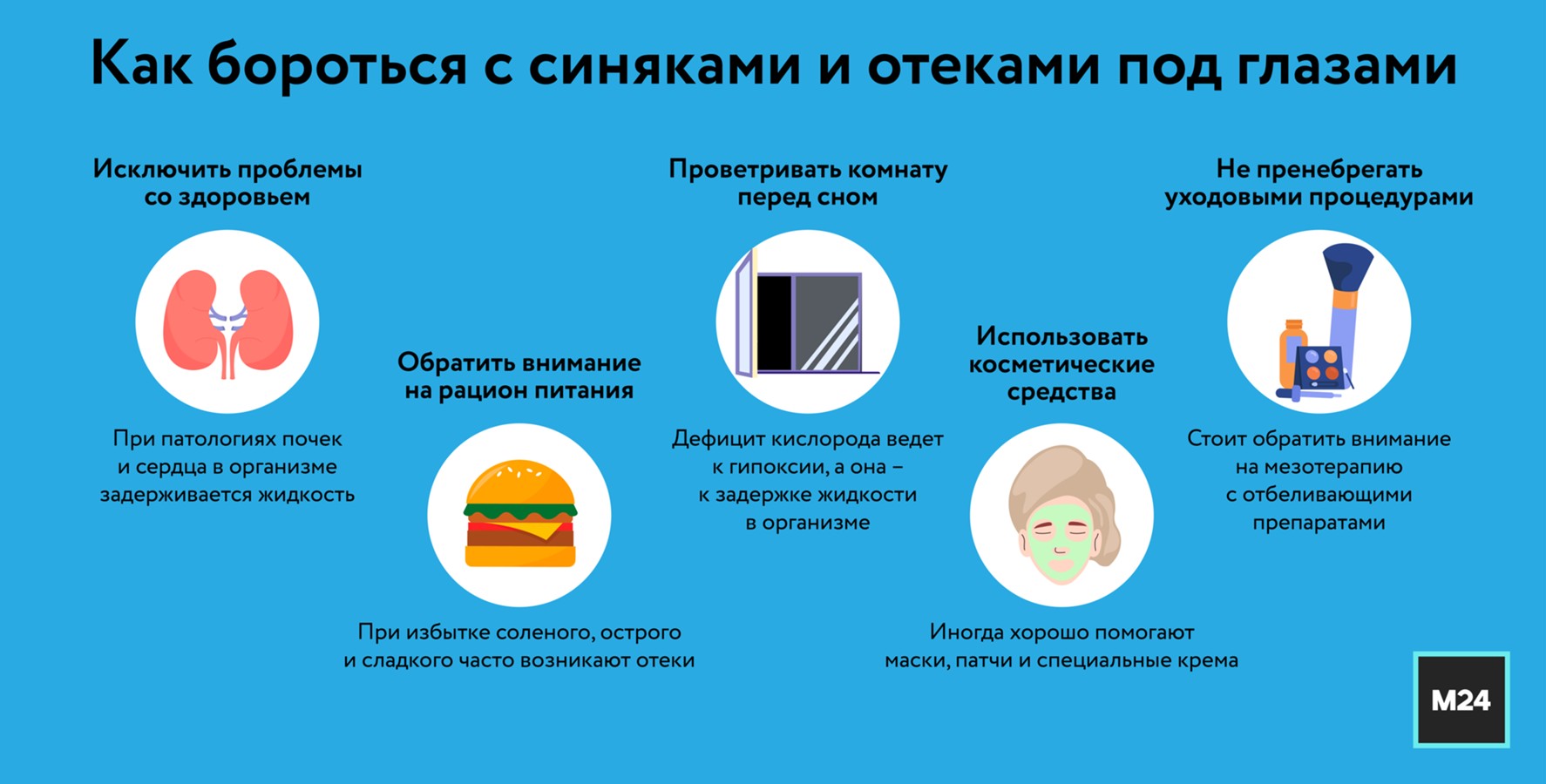 Отеки и синяки под глазами часто появляются из-за сбоев в организме, а в некоторых случаях – недостаточного ухода за кожей. Почему возникают подобные эстетические проблемы, и как с ними справиться, разбиралась Москва 24.