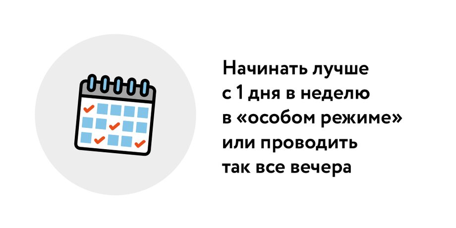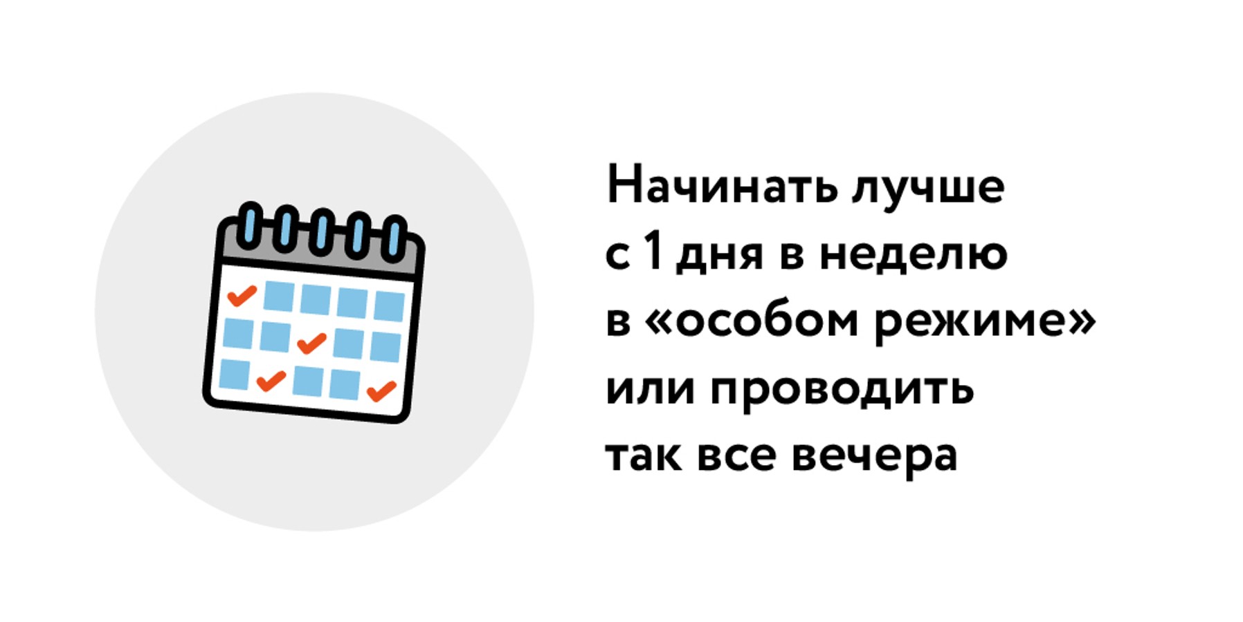 Помимо этого, нужно подготовить несколько бумажных книг, чтобы не включать сериалы или фильмы на планшете, составить чек-лист с задачами по дому или заняться тренировкой в зале.