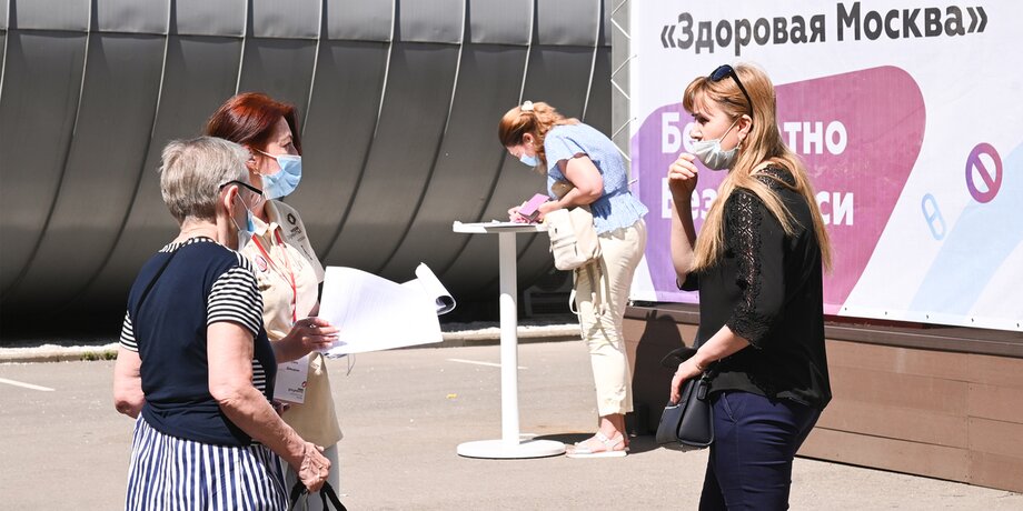На площадке волонтеры инструктируют жителей столицы, помогают заполнять анкеты перед прививкой и отвечают на важные вопросы. Также они выдают маски, следят за соблюдением безопасного расстояния и просто поддерживают хорошее настроение у горожан в очереди.