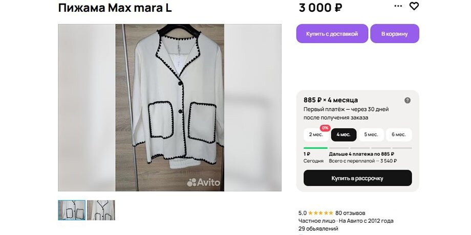 "Пижама, брюки на резинке, цвет слоновой кости, элегантная отделка в стиле "Вы будете неотразимы". Подарили на 8 Марта, а я сплю в хлопковой ночнушке. Привычка", – объяснила автор объявления.