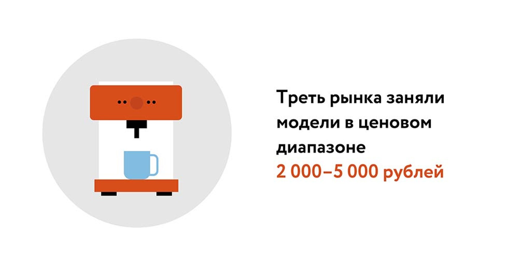 Основным драйвером роста стали недорогие устройства стоимостью до 5 000 рублей, на которые приходится около половины всех продаж в штуках. Треть рынка заняли модели в ценовом диапазоне 2 000–5 000 рублей. Рост продаж отметили и на маркетплейсах: на одном из них оборот кофеварок за три квартала удвоился (+107%) при среднем чеке около 4 000 рублей, отметил эксперт.