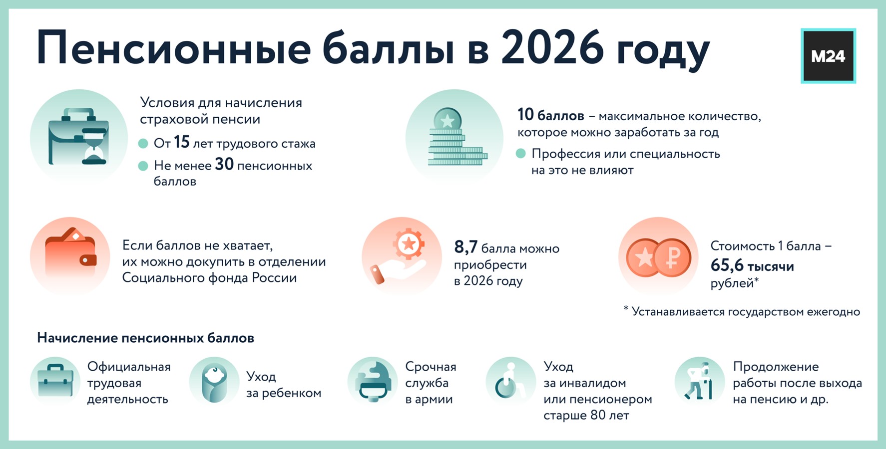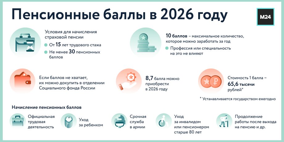 Стоимость одного пенсионного балла в 2026 году составит более 65 тысяч рублей, напомнили в Общественной палате. Кому и зачем их покупать, разбиралась Москва 24.