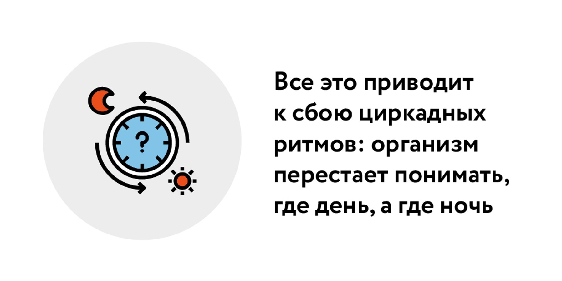 В результате все это приводит к сбою циркадных ритмов: организм перестает понимать, когда наступает день, а когда ночь. По словам Бузунова, сбой в гормональном профиле, из-за чего у женщин могут начаться проблемы с фертильностью, а у мужчин – с потенцией. Кроме того, страдает сердечно-сосудистая система и иммунитет, из-за чего сотрудник в целом начинает чаще болеть, предупредил врач.
