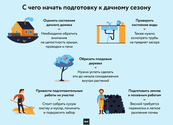Дачный сезон в столичном регионе может начаться раньше обычного из-за теплой погоды и отсутствия снежного покрова, считают эксперты. Москва 24 расскажет, какие работы стоит провести на участке уже в марте, а также что нужно в первую очередь проверить в доме.