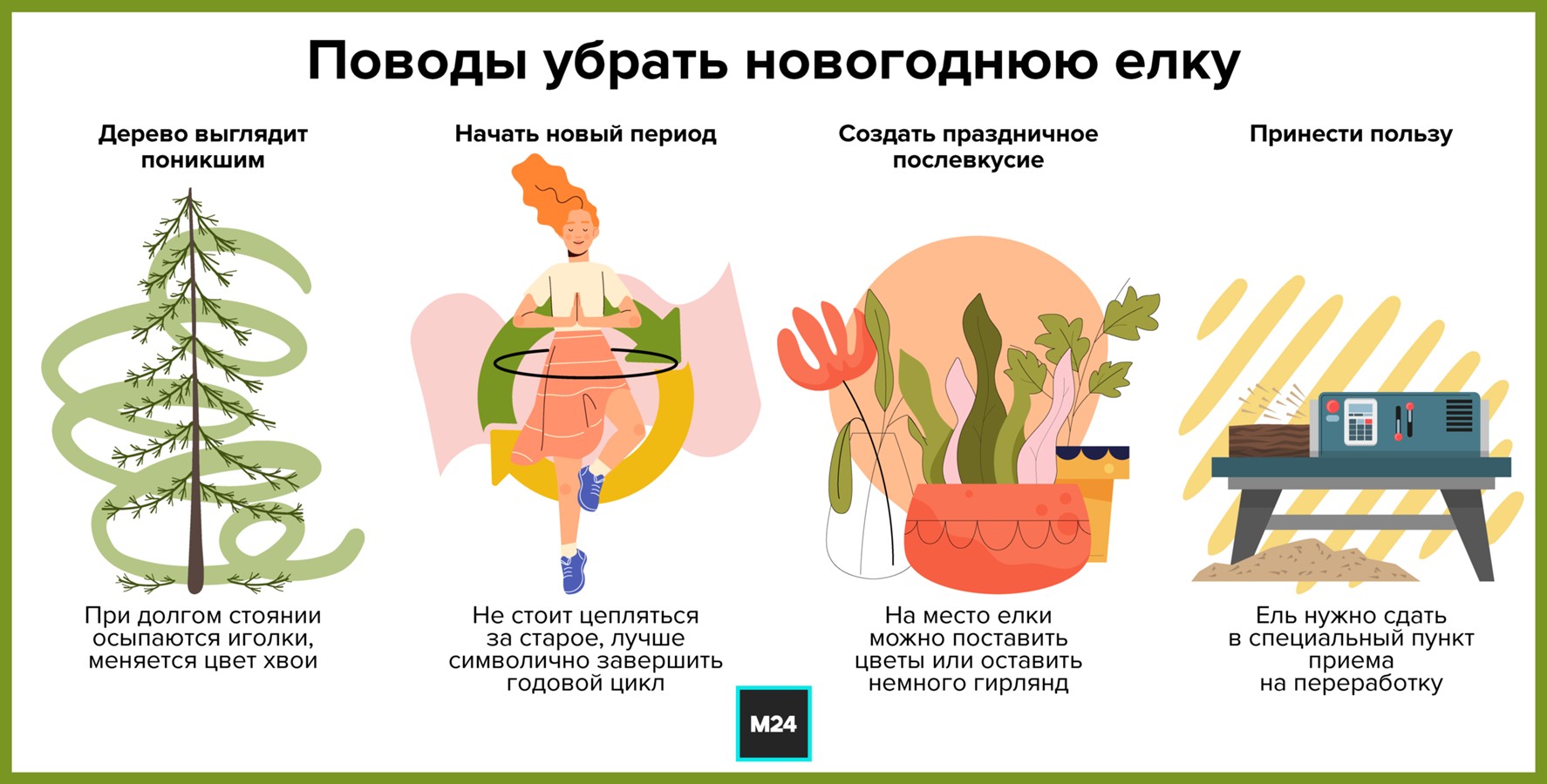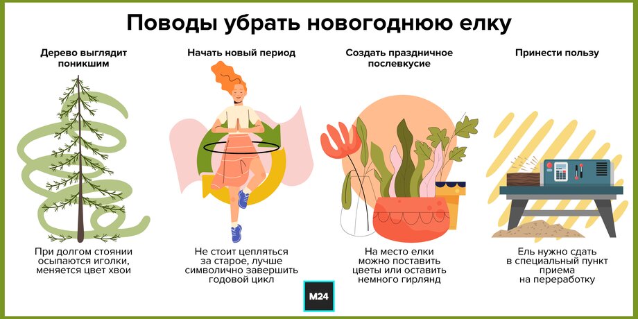 В свою очередь, психолог, кандидат психологических наук, преподаватель психологии Софья Сулим в разговоре с Москвой 24 посоветовала не оставлять праздничное дерево надолго, поскольку это может помешать завершению жизненных циклов.