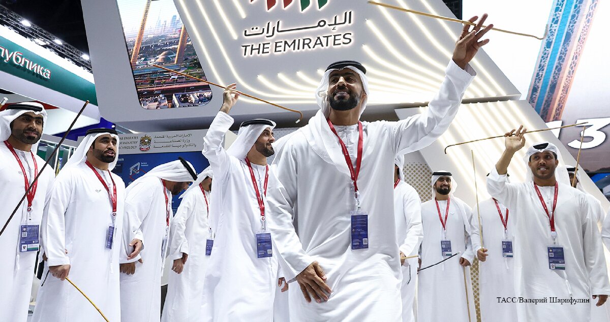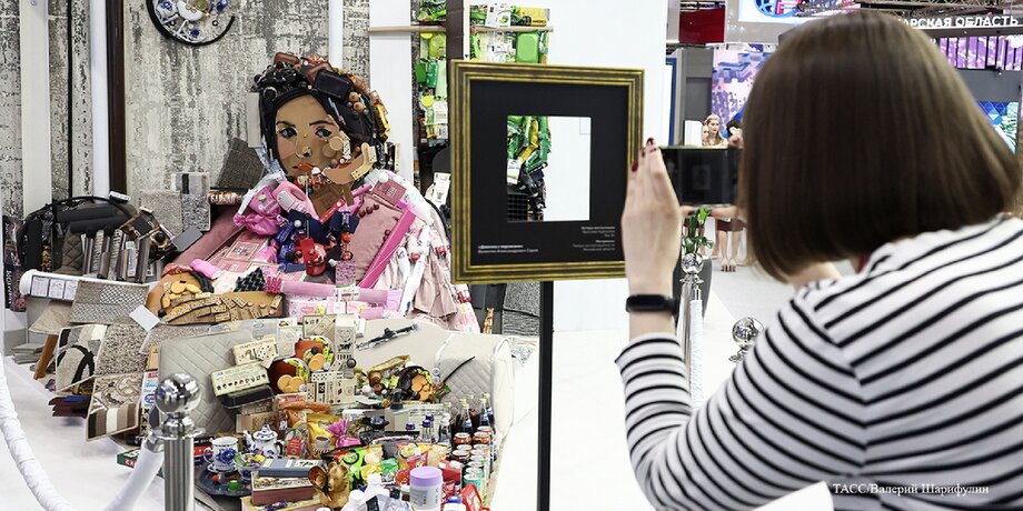 Удивили посетителей ПМЭФ и делегаты из Объединенных Арабских Эмиратов (ОАЭ). Мужчины в национальной одежде исполнили песню и танец с тростями. С собой в подарок они также привезли конфеты и финики. На стенде Подмосковья участники заметили довольно необычную версию картины "Девочка с персиками". Трехмерную инсталляцию собрали из всего, что производится на территории региона. В частности, в создании образа героини знаменитой картины Валентина Серова использовали чипсы, йогурты, домино, ватные диски, пряжу, части лифтов, прицепов и моторов.