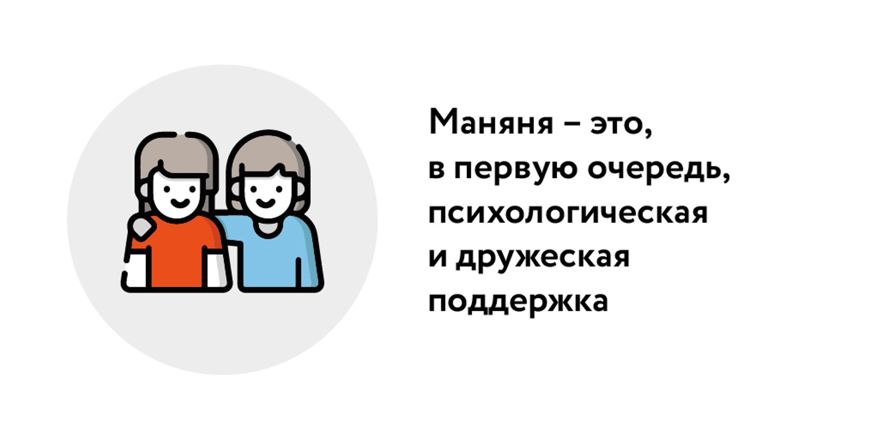 "Маняня – это, по сути, няня для мамы. Она оказывает физическую и бытовую помощь: может сходить погулять с коляской, приготовить еду, просто поговорить по душам. Это помощь "плечом рядом", когда других близких нет – муж на работе, а родители далеко", – отметила она.
