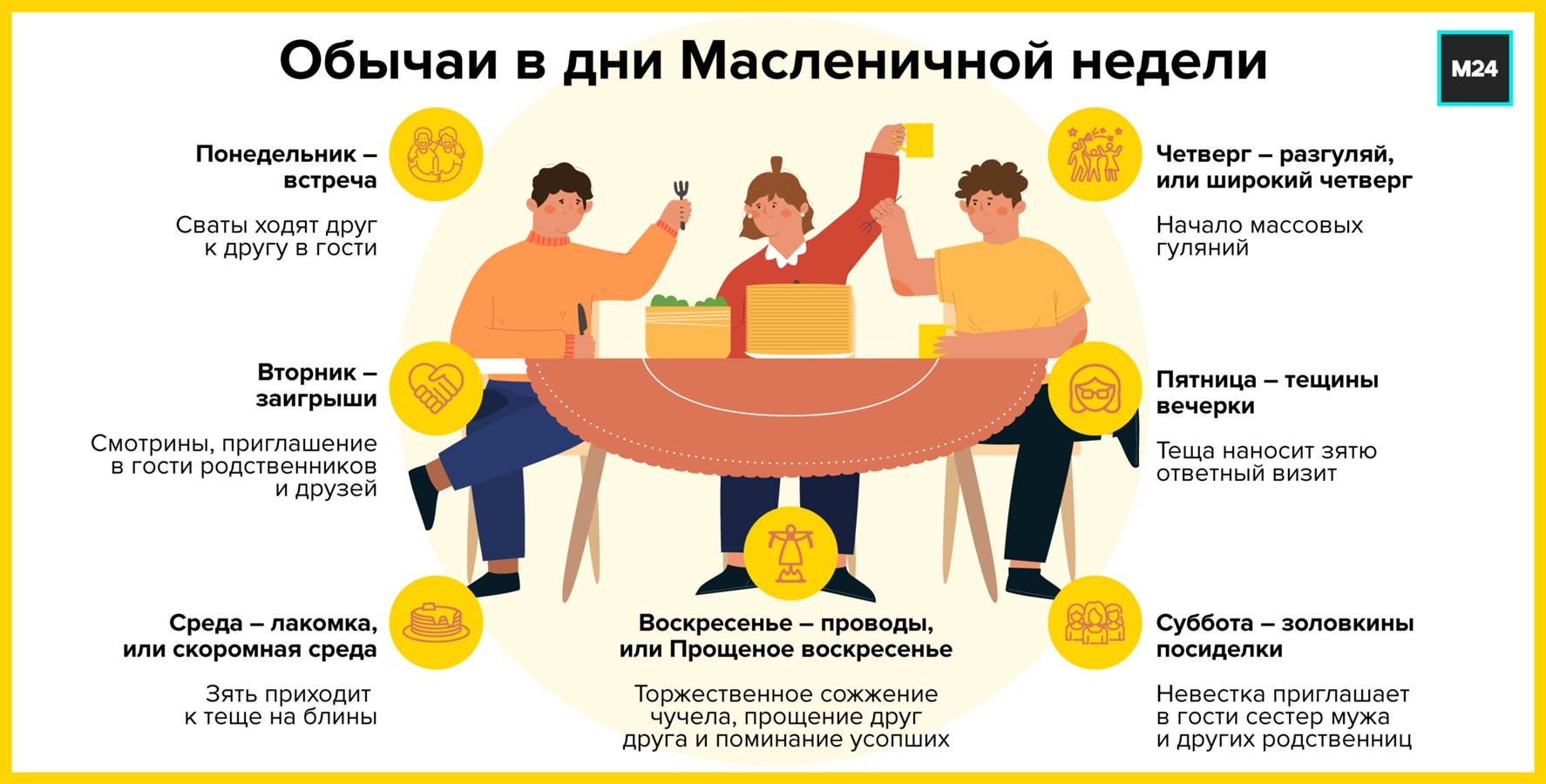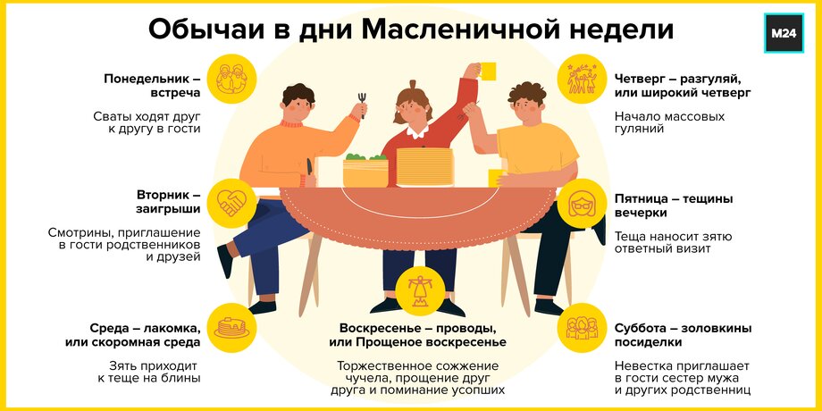 Масленичная неделя в 2026 году отмечается с 16 по 22 февраля. Каждый из семи дней имеет свои обычаи и значение. О традициях праздника, помимо приготовления блинов, расскажет Москва 24.