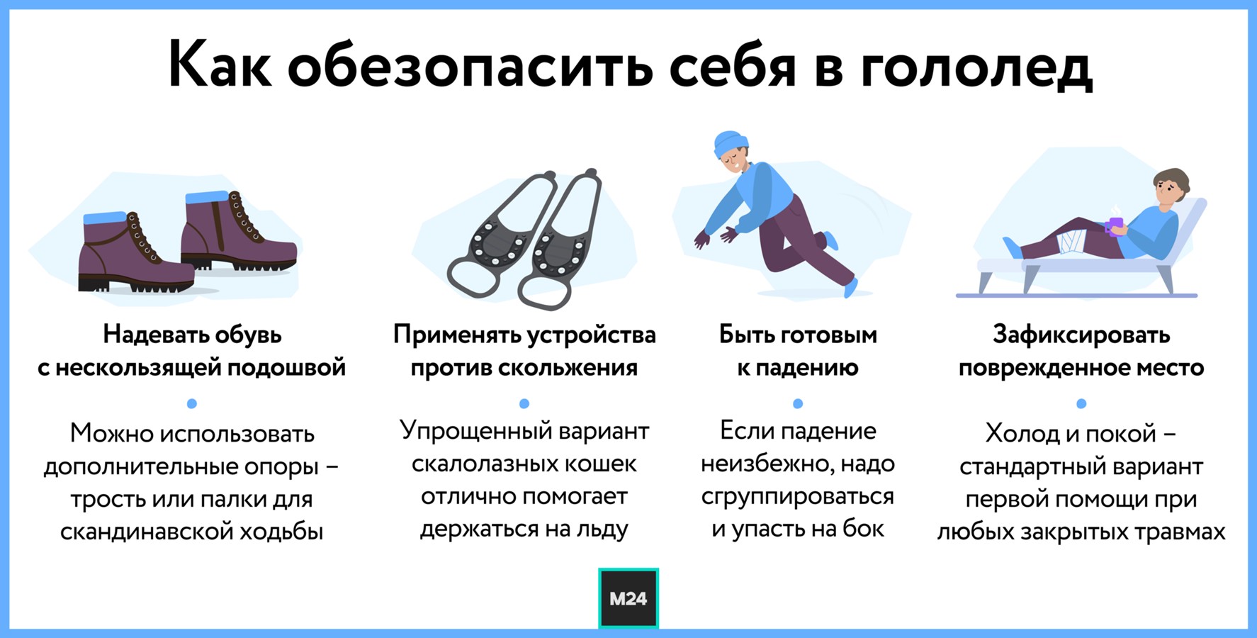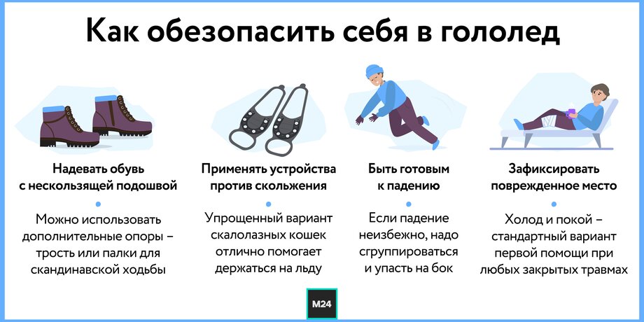 "Для возрастных граждан особенно важно иметь обувь с нескользящей подошвой, а также использовать дополнительные опоры – трость или другие приспособления для разгрузки", – сказал Катулин Москве 24.