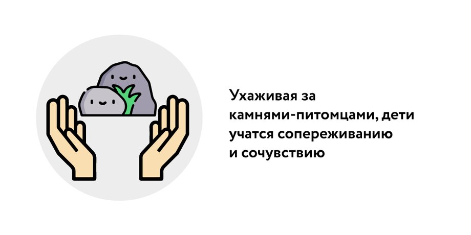 Кроме того, взаимодействие с камнями-питомцами частично закладывает основы эмпатии. Ухаживая за ними, дети учатся сопереживанию и сочувствию, отметила эксперт. Однако, по ее мнению, гораздо более эффективны в таких случаях традиционные способы – например, забота о младших братьях и сестрах, настоящих питомцах.