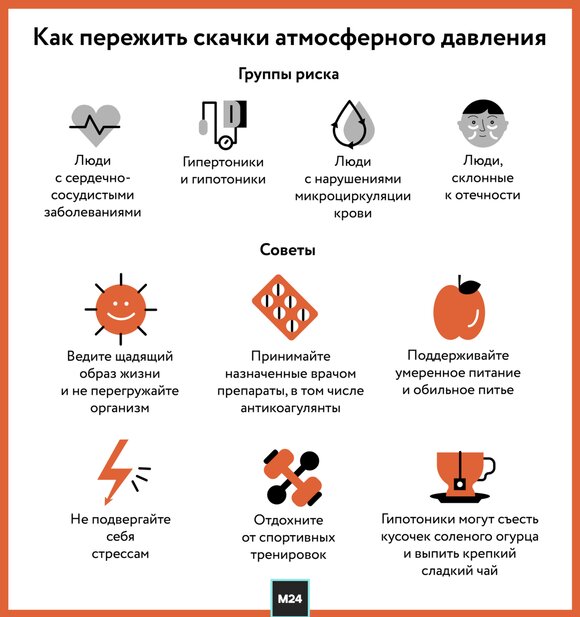 До конца текущей недели жителей столицы ожидают сильные перепады атмосферного давления. Врачи предупреждают, что это особенно отразится на метеозависимых. О том, как облегчить свое самочувствие, расскажет Москва 24.
