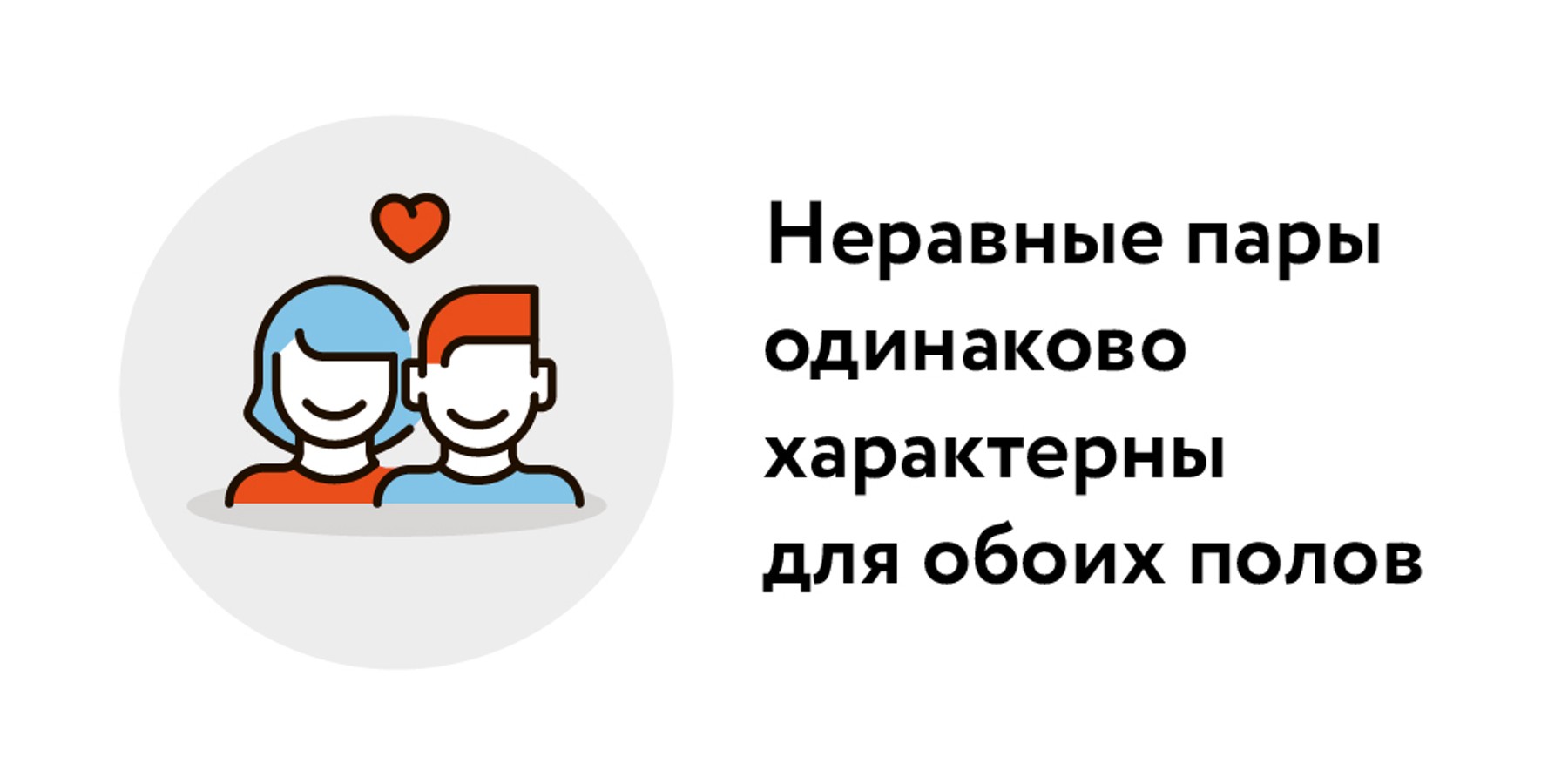 В то же время сексолог Александра Миллер указала, что неравные пары одинаково характерны для обоих полов.