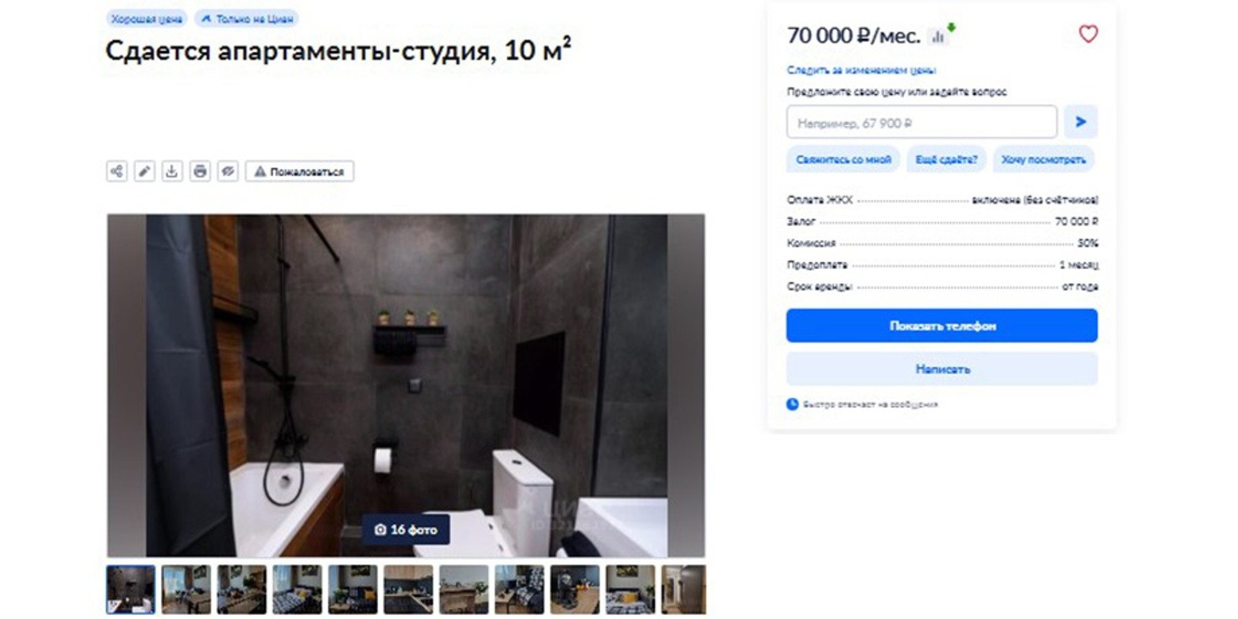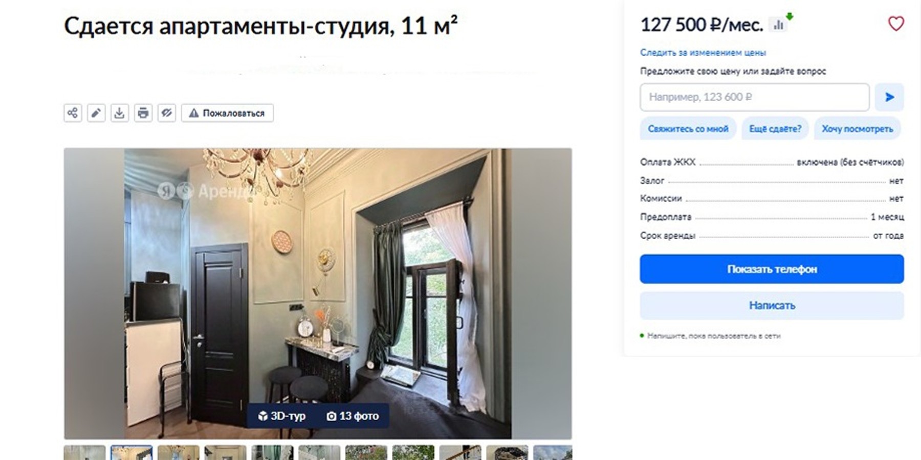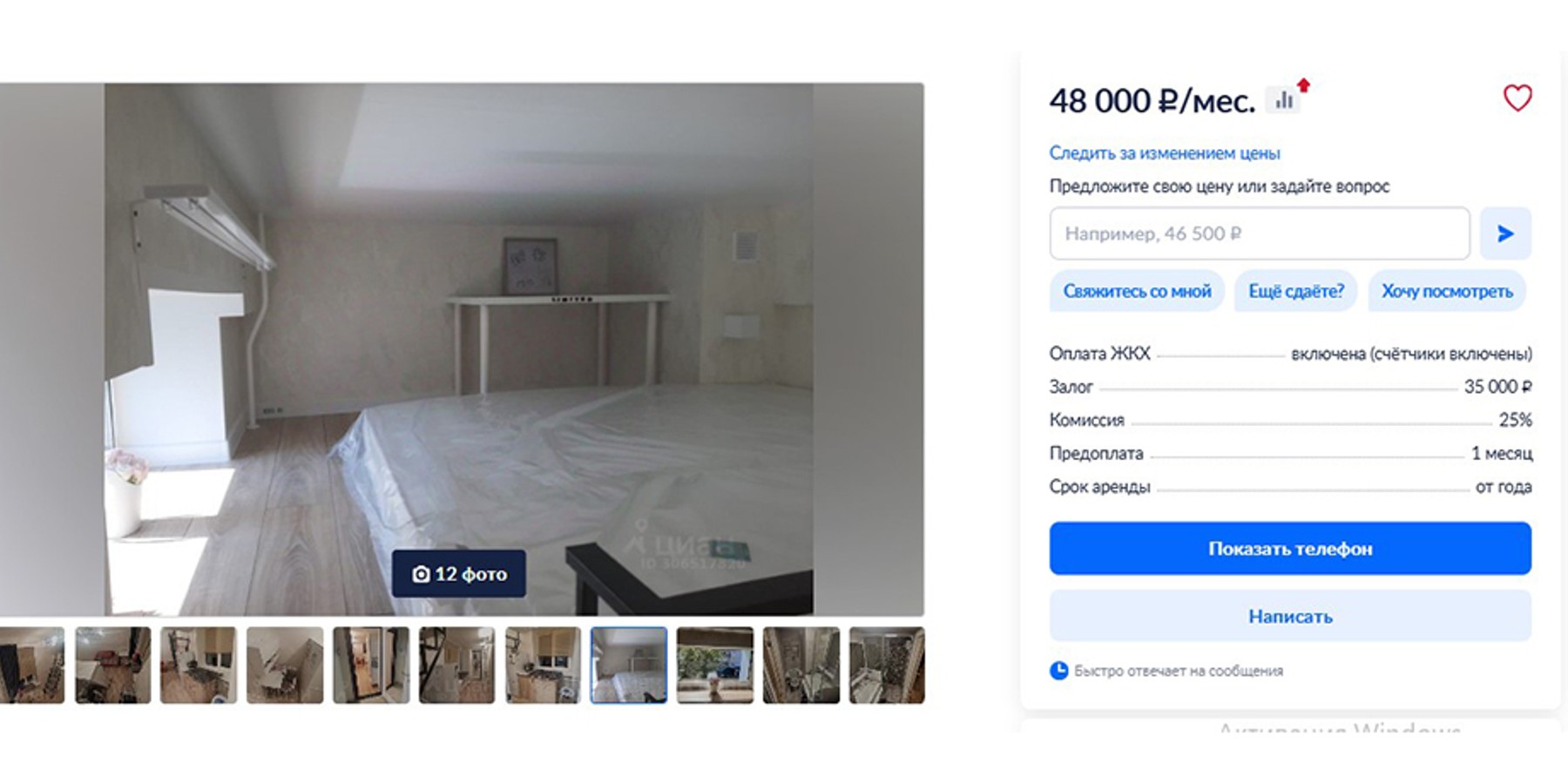 Также в сервисах недвижимости можно встретить и другие предложения об аренде микрожилья. Например, возле станции "Моссельмаш" на севере Москвы предложили снять "уютную двухуровневую студию", общая площадь которой составляет 15 квадратных метров. Автор объявления отметил, что внутри находятся все удобства: несколько шкафов и столов, диван, стол, кухня и техника. При этом место для сна находится на втором этаже, практически под потолком. Аренда за такое жилье составляет 48 тысяч рублей в месяц.