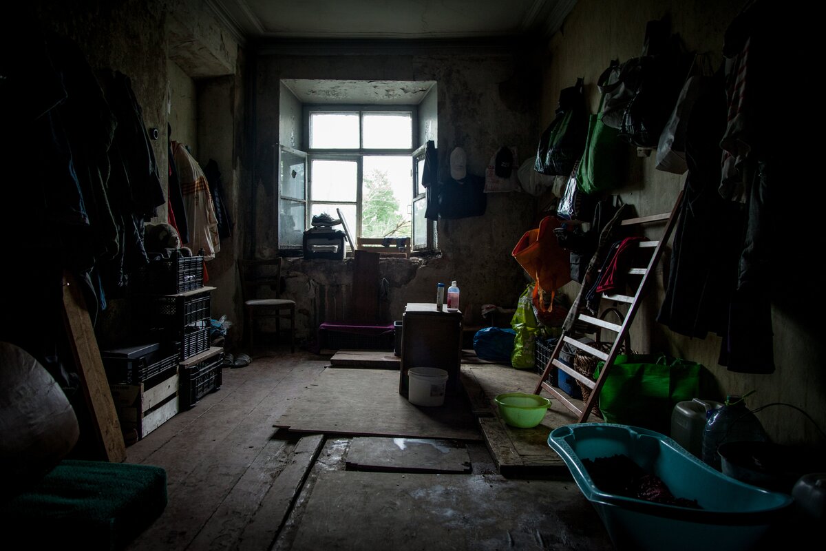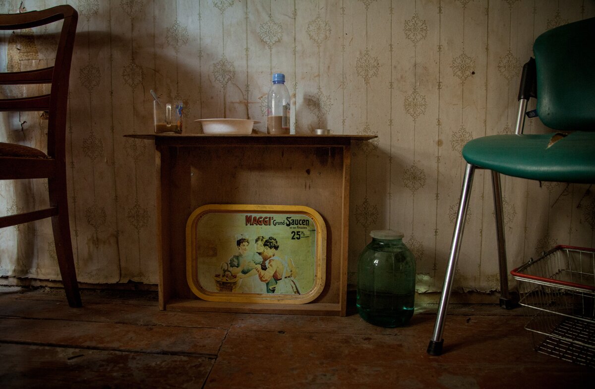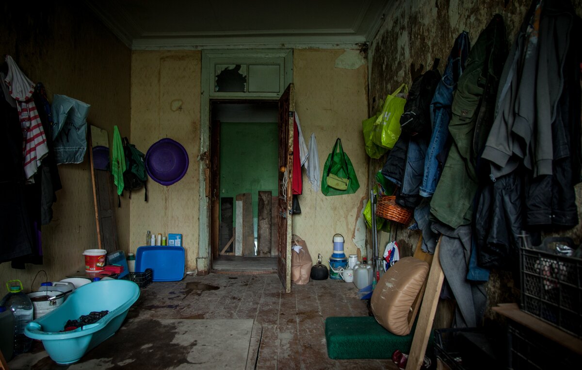 Сколько поколений жило здесь? Свалка чужой, недоступной памяти в каждом углу. Большая комната слева заполнена вещами. Кладовая найденного на помойке. На пробое, как говорят бездомные.