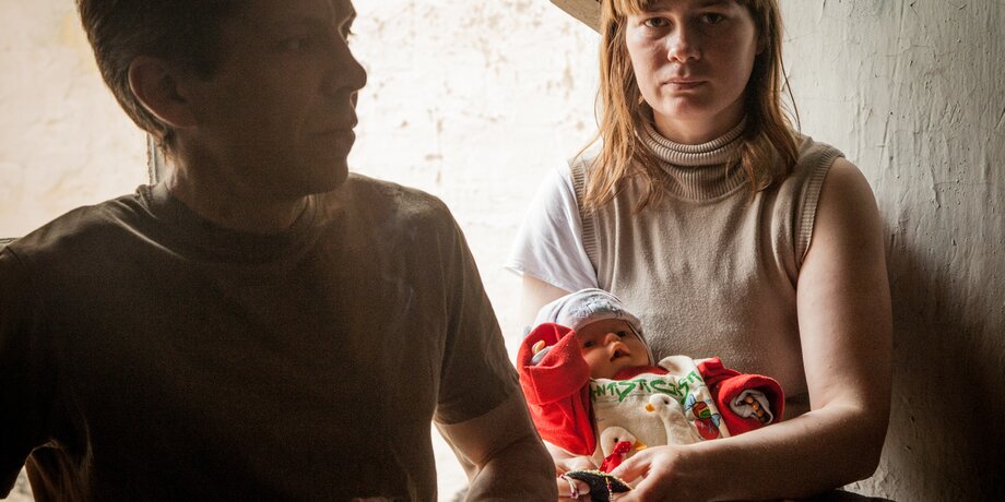 На полу лежит большой матрас. Окна выходят во двор. В квартире живут двое. Он и она. По вечерам они зажигают свечи и фонарики. Он говорит, что это очень романтично. Она молчит и продолжает разглядывать нас. Ее страх понемногу отступает. Она улыбается вместе с нами. Но сверток держит крепко.