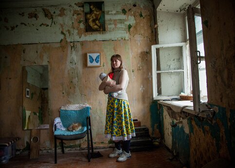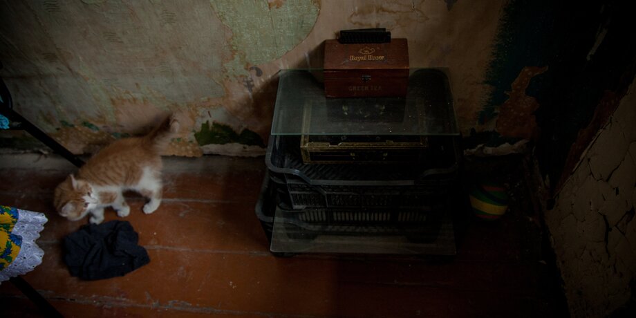 Он ведет меня в комнату, в глубине на стуле сидит женщина. На ней кремовая кофта без рукавов, цветастая юбка, теплые носки и кроссовки. В голове резонирует: все найдено на помойке. Я видел эту женщину выглядывающей из окна. Тогда она смотрела с затаенным любопытством. Сейчас вжалась в угол, в спинку хрустящего стула. Она редко общается с чужаками. Он с улыбкой рассказывает про котенка, живущего у них. Котенок смышленый, он упорно лезет в объектив фотоаппарата. Я натянуто улыбаюсь, но думаю о другом.
