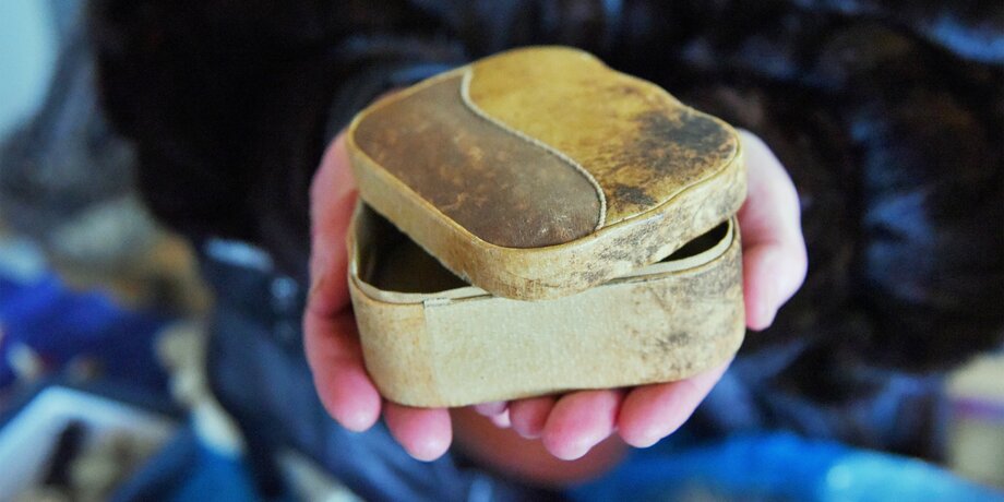 Изготовлена она в XIX веке, и, надо отметить, шкатулка очень добротно сделана: два вида кожи, красивое тиснение. Обивка сохранилась в отличном состоянии до сих пор. Скорее всего, шкатулка была сделана в России, но привезена из другого города. У барина ведь были фабрики и в других губерниях, куда он часто ездил и мог привозить оттуда подарки.
