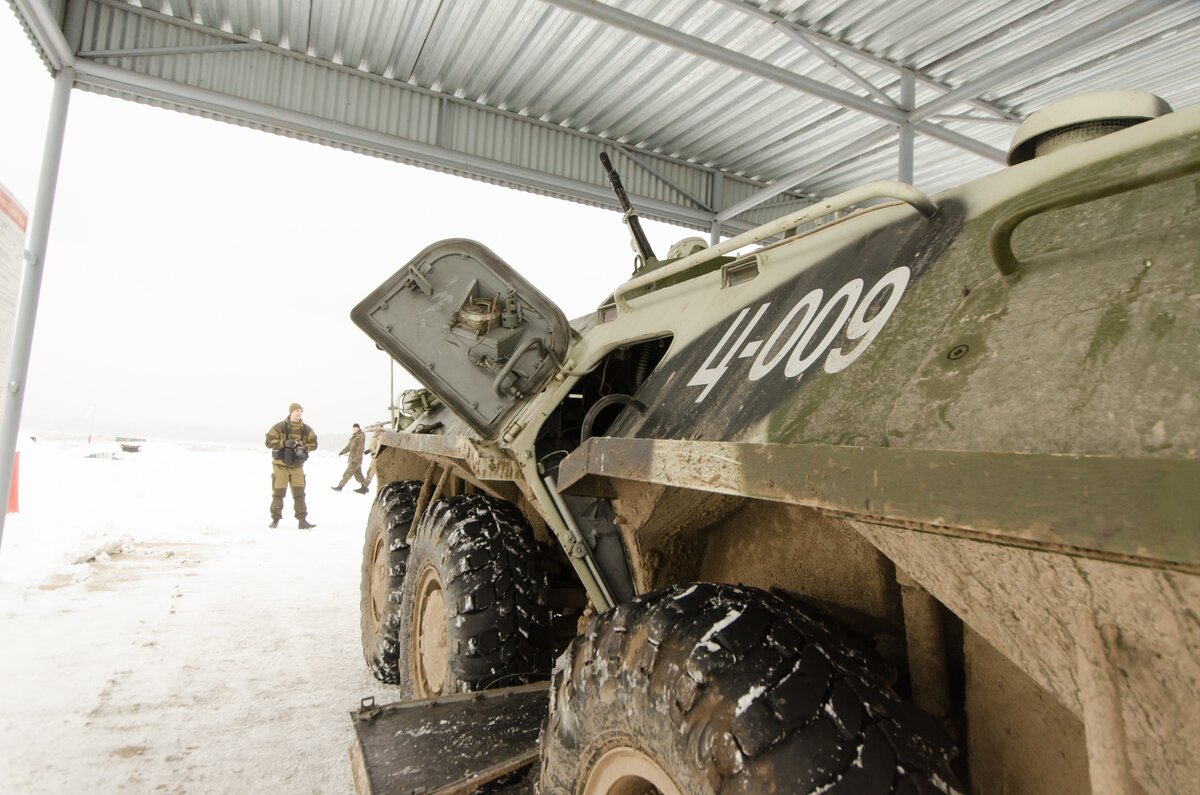 Рядом с городком – стоянка техники. Там есть БТР, грузовики и машины "Тигр", на которых передвигается ОМОН.