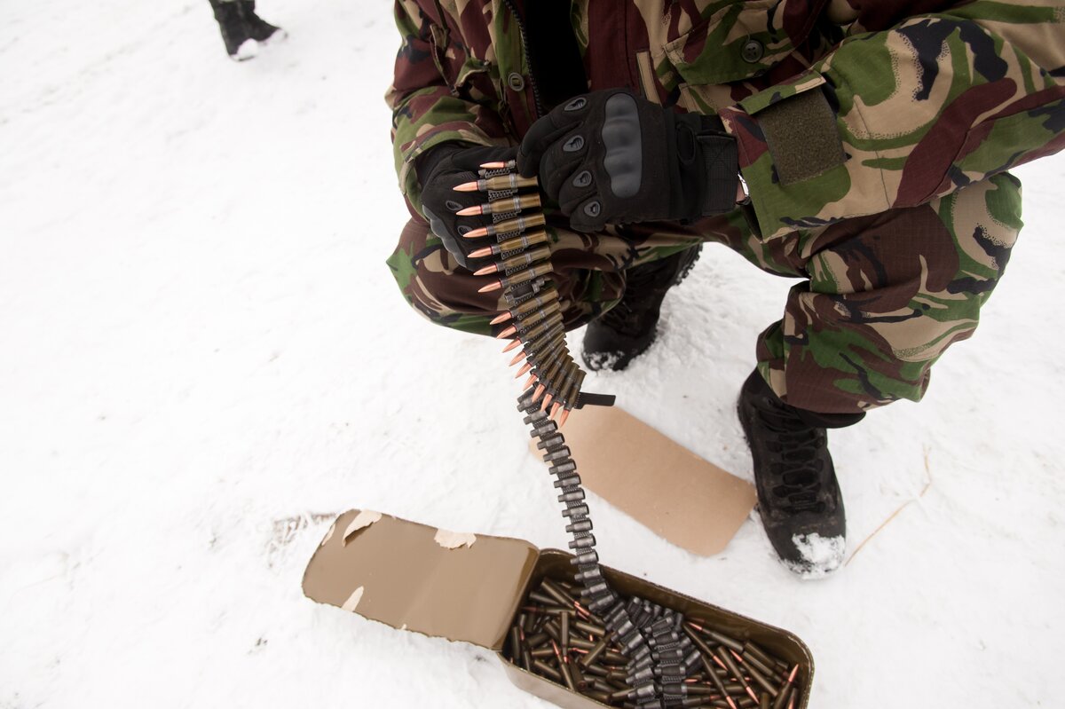Далее идет огневой рубеж для автоматов – мишени там подальше, около 100 метров. Следующий – для пулеметов, цели на таком же расстоянии. Кстати, гильз на полигоне не найти – их собирают и складывают в отдельный ящик. Собрать их в поле, конечно, сложно, и для этих целей используют специальные мешки-гильзоулавливатели, в которые они улетают.