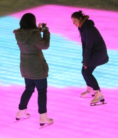Каток в новом сезоне сильно изменился: ему подобрали особое освещение. Над ледяными аллеями появились светящиеся геометрические фигуры, а под лед встроили 33000 светодиодов. Между центральными павильонами проката также добавили света.