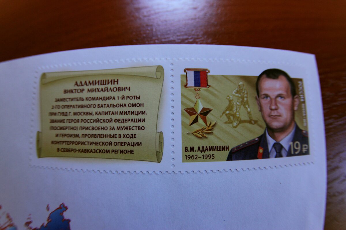 В культурном центре столичной полиции прошла презентация и официальная церемония памятного гашения почтовой марки, посвященной Герою Российской Федерации Виктору Адамишину.