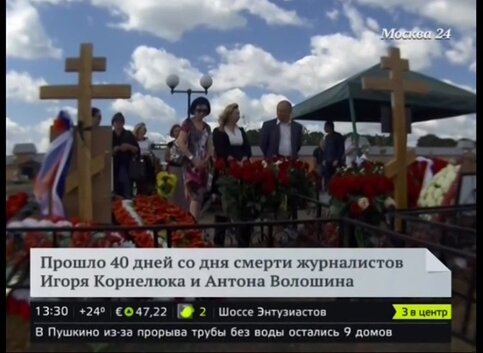 На Троекуровском кладбище прошла панихида по журналистам Игорю Корнелюку и Антону Волошину, передает телеканал "Москва 24". Они погибли на востоке Украины при выполнении редакционного задания. Со дня их смерти прошло 40 дней.