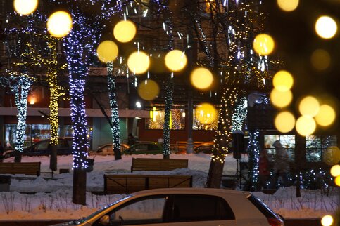 Напомним, центральные улицы города украсили световыми объектами, тоннелями и гирляндами. Всего загорелось более двух тысяч световых гирлянд, а на 9 площадках установили огромные светящиеся цифры "2016".