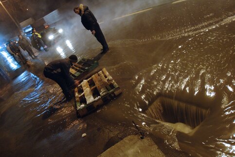 На пересечении Хорошевского шоссе и улицы Поликарпова произошел инцидент, из-за которого соответствующими службами было перекрыто движение автотранспорта по ул. Поликарпова в районе д. 19. Из-за прорыва трубы залило проезжую часть. Об этом сообщает агентство городских новостей "Москва".