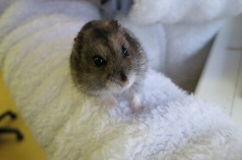 Джунгарского хомяка обнаружили на одной из дорожек парка в ночь на 24 ноября. Охранники забрали животное к себе на пост, где хомяк и поселился.