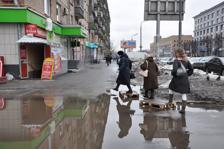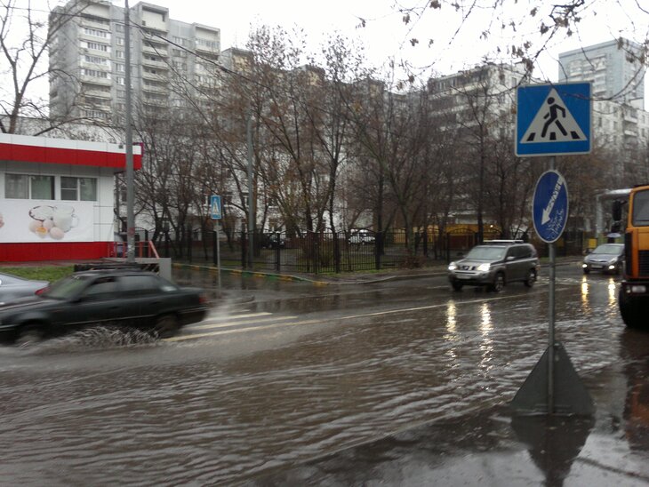 Москвичи сообщают о лужах, мешающих перейти дорогу.