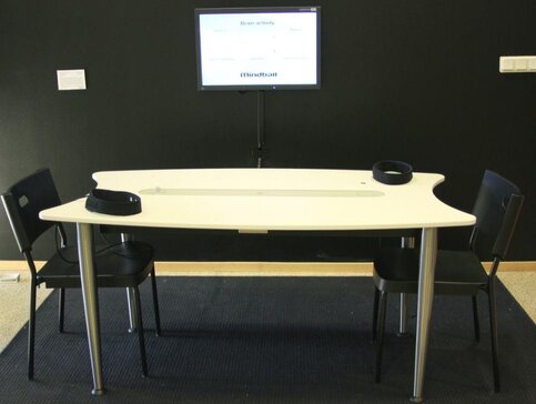 Mindball - это игра, основанная на демонстрации силы волн, излучаемых мозгом. На участников одеваются датчики, которые реагируют на активность этих волн и позволяют передвигать предметы на поле.